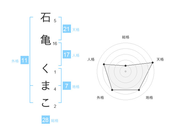 石亀 くまこさんを姓名の画数から五運を鑑定