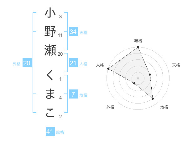 小野瀬 くまこさんを姓名の画数から五運を鑑定