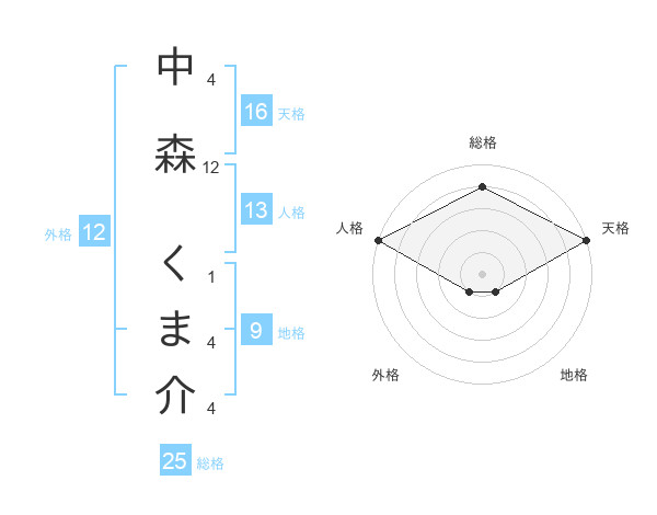 中森 くま介さんの総格は25画の4点!