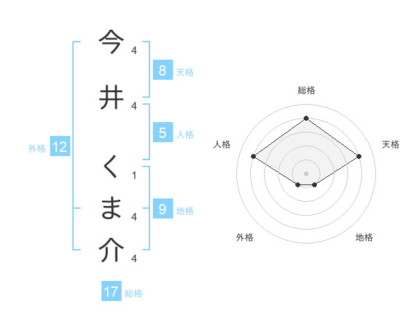今井 くま介さんの総格は17画の4点!
