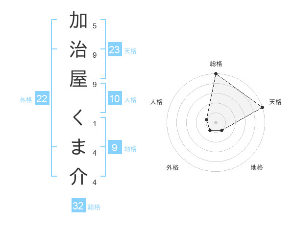 加治屋 くま介さんを姓名の画数から五運を鑑定