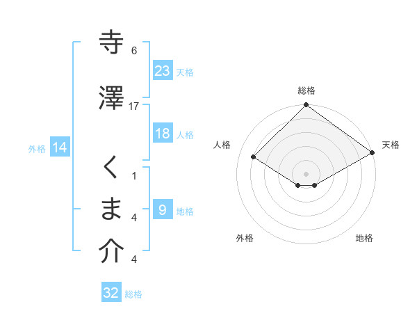 寺澤 くま介さんの総格は32画の5点!