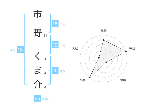 市野 くま介さんの外格は13画の5点!