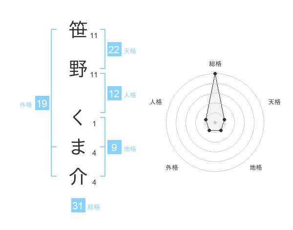 笹野 くま介さんの総格は31画の5点!