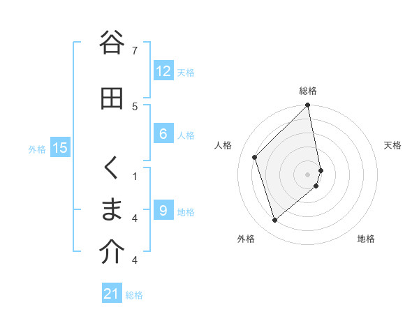 谷田 くま介さんを姓名の画数から五運を鑑定