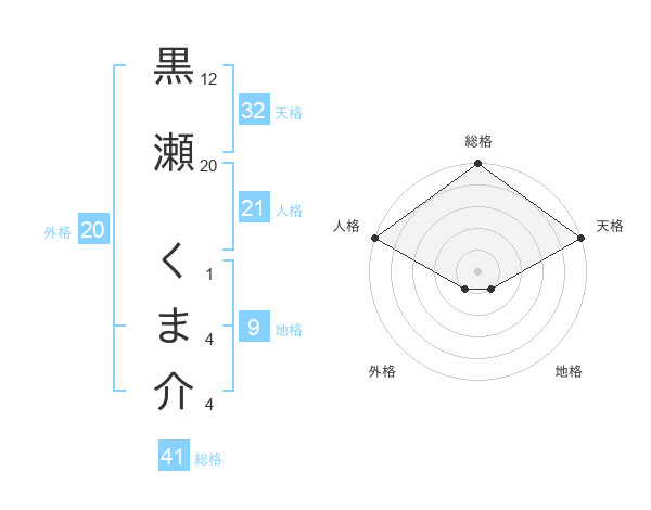 黒瀬 くま介さんの天格は32画の5点!