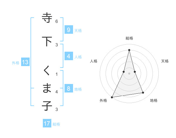 寺下 くま子さんの外格は13画の5点!