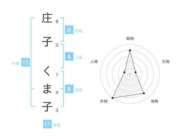 庄子 くま子さんの外格は13画の5点!