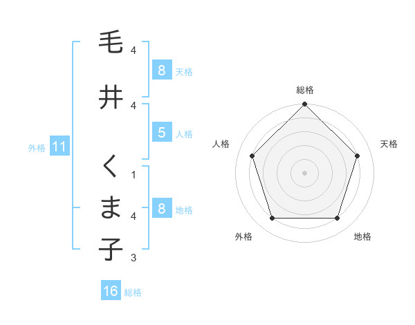 毛井 くま子さんの総格は16画の5点!