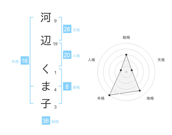 河辺 くま子さんを姓名の画数から五運を鑑定