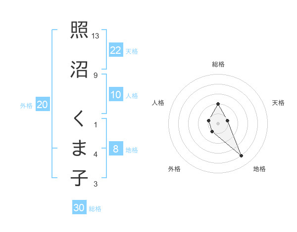 照沼 くま子さんを姓名の画数から五運を鑑定