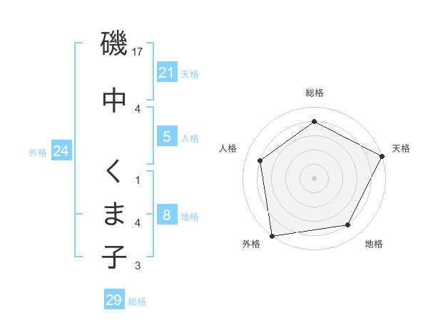 磯中 くま子さんを姓名の画数から五運を鑑定