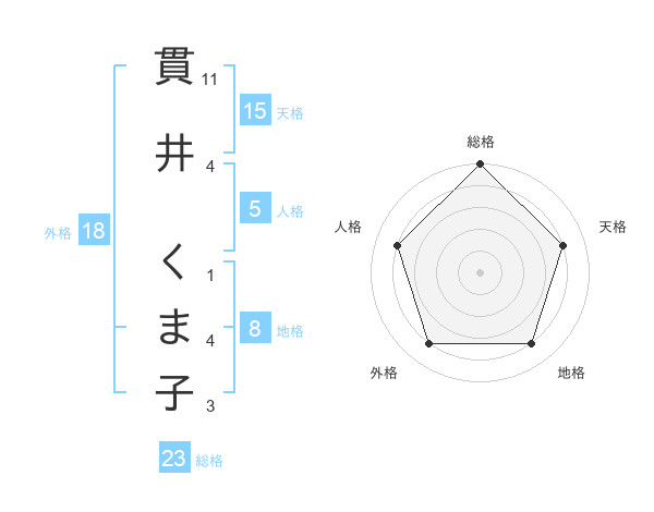 貫井 くま子さんを姓名の画数から五運を鑑定