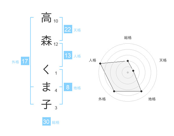 高森 くま子さんの総格は30画の2点!