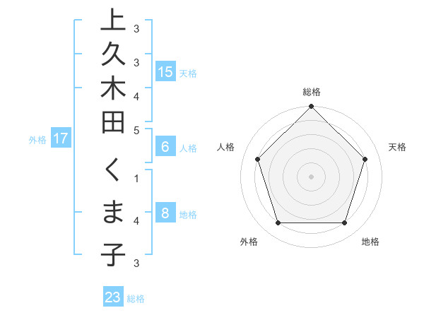 上久木田 くま子さんを姓名の画数から五運を鑑定