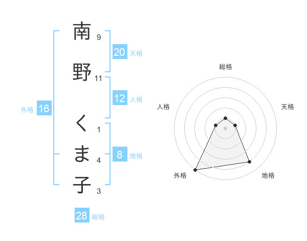 占い結果は姓名判断である以上、良い場合も悪い場合もありますが、決してお名前を誹謗中傷するものでなく、画数の自動計算によって得られたものです。また、本サイトの検索によって得られた鑑定結果で、第三者を誹謗中傷したり名誉を棄損するような行為を禁じます。