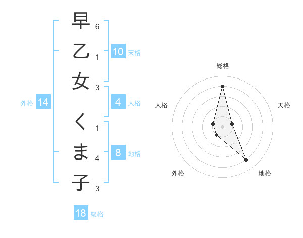早乙女 くま子さんの総格は18画の4点!