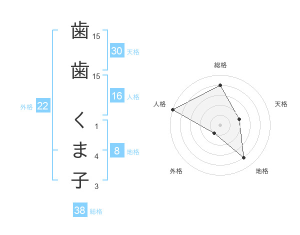 歯歯 くま子さんを姓名の画数から五運を鑑定