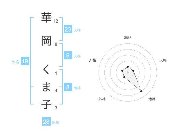 華岡 くま子さんを姓名の画数から五運を鑑定