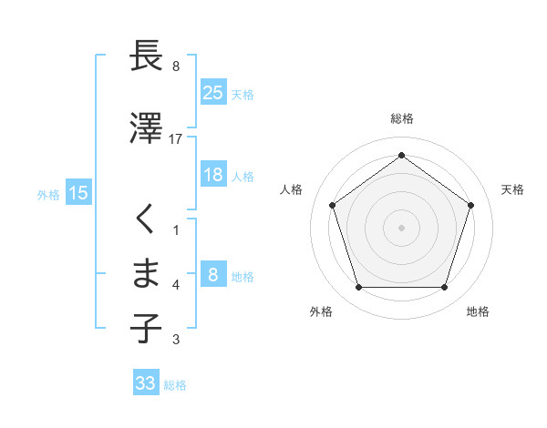 長澤 くま子さんの総格は33画の4点!
