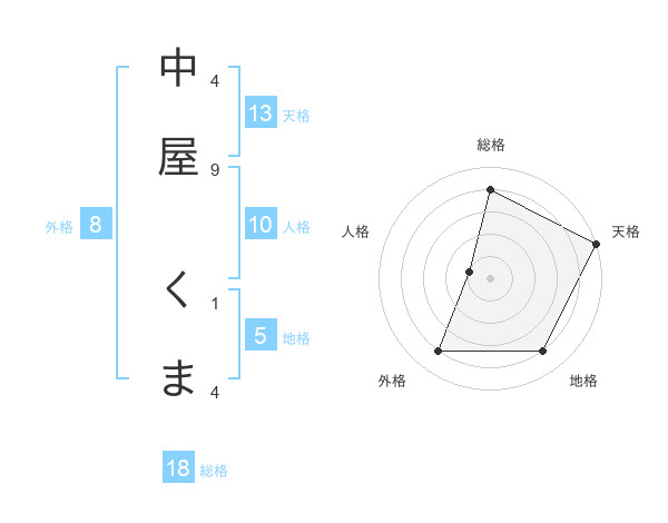 中屋 くまさんの天格は13画の5点!