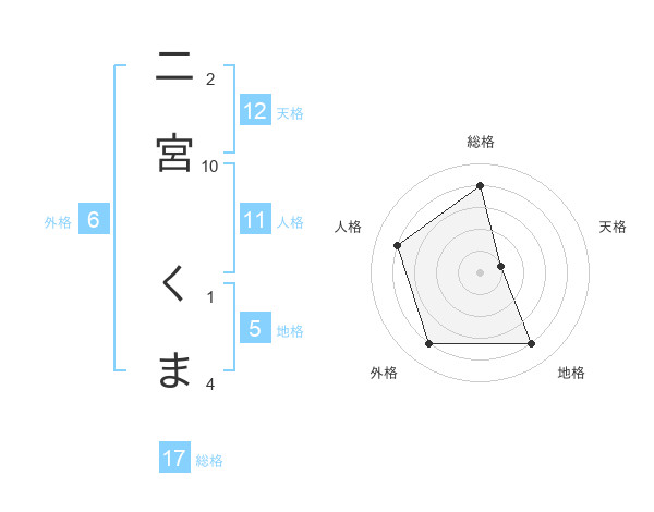 二宮 くまさんの天格は12画の1点!
