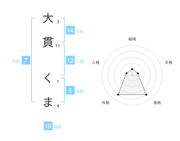 大貫 くまさんの外格は7画の4点!