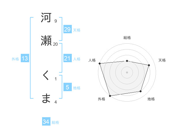 河瀬 くまさんの外格は13画の5点!