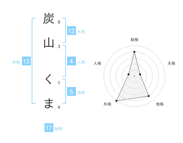炭山 くまさんの総格は17画の4点!