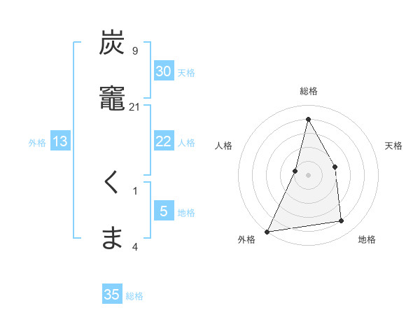 炭竈 くまさんの総格は35画の4点!