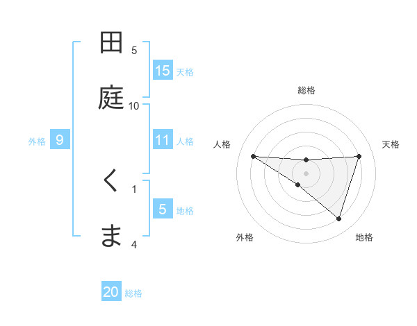 田庭 くまさんの総格は20画の1点!