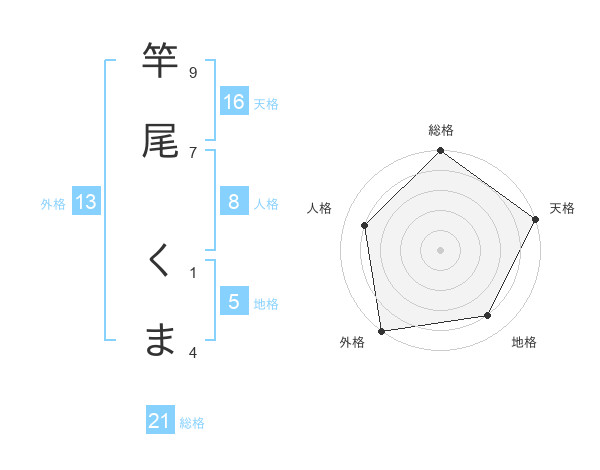 竿尾 くまさんを姓名の画数から五運を鑑定