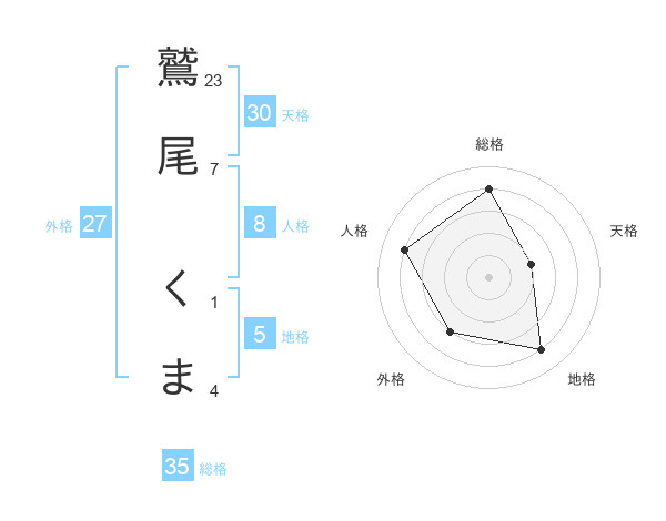 鷲尾 くまさんの天格は30画の2点!