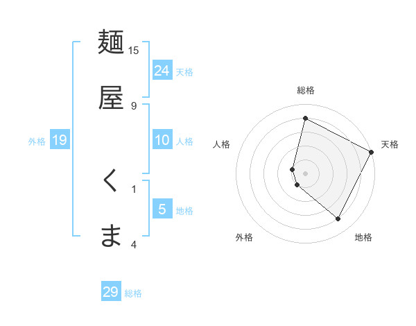 麺屋 くまさんの総格は29画の4点!