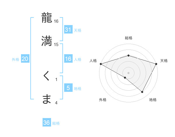 龍満 くまさんの天格は31画の5点!