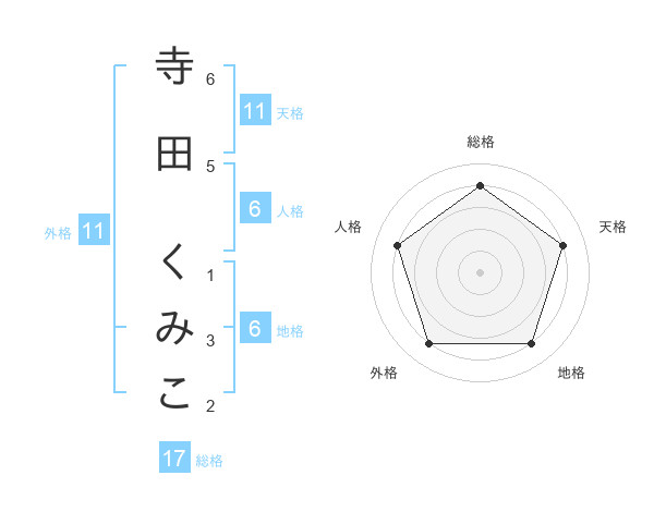寺田 くみこさんを姓名の画数から五運を鑑定