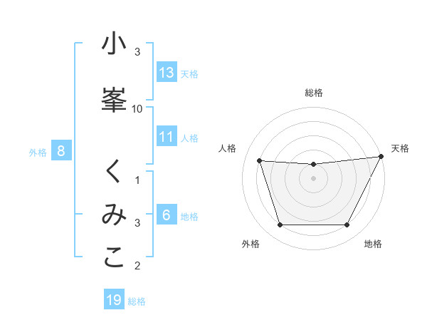 小峯 くみこさんの天格は13画の5点!