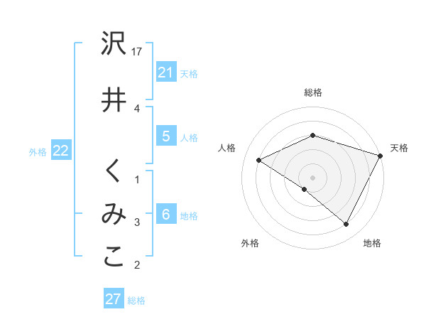 沢井 くみこさんの天格は21画の5点!