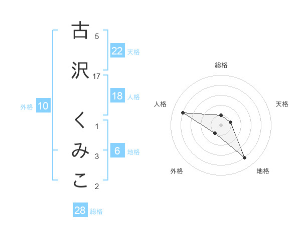 古沢 くみこさんを姓名の画数から五運を鑑定