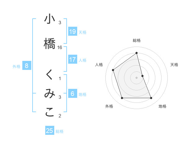 小橋 くみこさんを姓名の画数から五運を鑑定