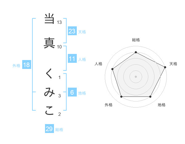 当真 くみこさんの天格は23画の5点!