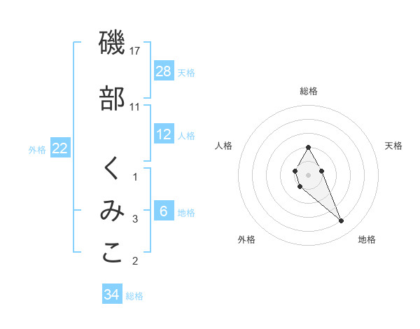 磯部 くみこさんを姓名の画数から五運を鑑定