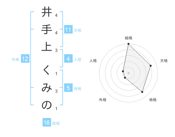 井手上 くみのさんを姓名の画数から五運を鑑定
