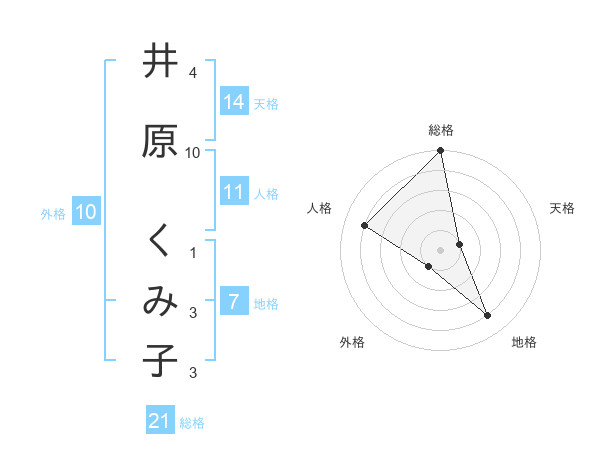 井原 くみ子さんを姓名の画数から五運を鑑定