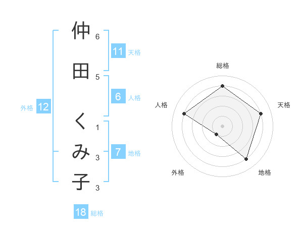 仲田 くみ子さんの総格は18画の4点!