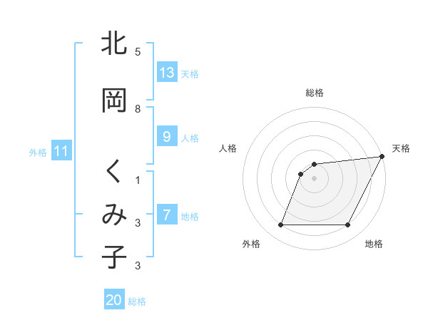 北岡 くみ子さんを姓名の画数から五運を鑑定