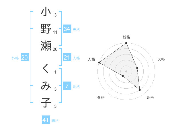 小野瀬 くみ子さんを姓名の画数から五運を鑑定