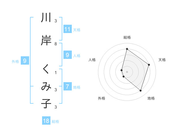 川岸 くみ子さんを姓名の画数から五運を鑑定