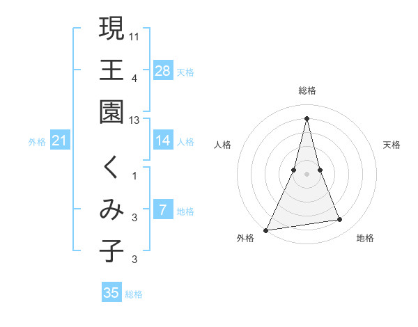 現王園 くみ子さんの総格は35画の4点!