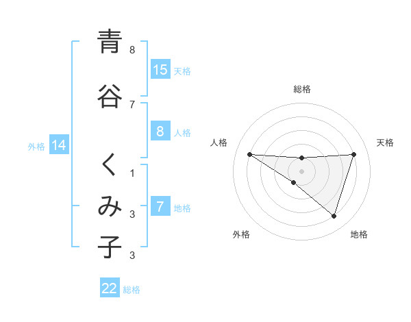 青谷 くみ子さんを姓名の画数から五運を鑑定